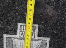 Клиент заказал симметричное уже установленному памятнику надгробье, поэтому для начала мы перемеряем уже существующие надпись, портрет, эпитафию и гравировки.