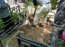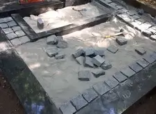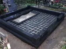 Мощение гранитной брусчаткой поверхности могилы,