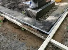 Замываем наземное покрытие, пока оно сохнет устанавливаем гранитный цоколь.