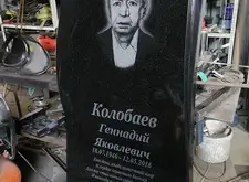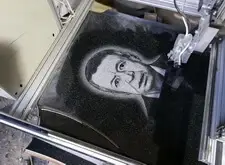 Предоставленную клиентом фотографию умершего готовим к нанесению на гранит, затем запускаем гравировальный станок и выбиваем портрет на камне.